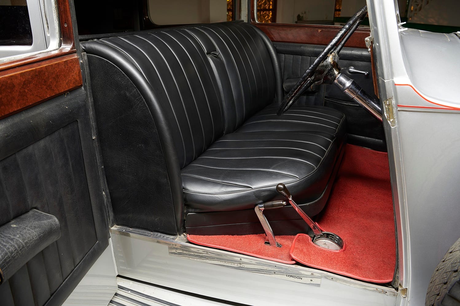 The car she acquired was a Rolls-Royce Phantom III. According to Phantom III historian Steve Stuckey, chassis #3BU82 left Rolls-Royce’s Derby factory on 1 February 1937, fitted with engine #R38J. Notably, this chassis was designated for use in the UK only. The chassis had been ordered by the coachbuilders Hooper on 11 August 1936 via the agent G. Newman. Hooper constructed a sedanca de ville body on it – the only other car of this design being on chassis #3CP170, now in Australia, according to Stuckey – and fitted it with a spare wheel on each side. The car cost £2,976 at the time.