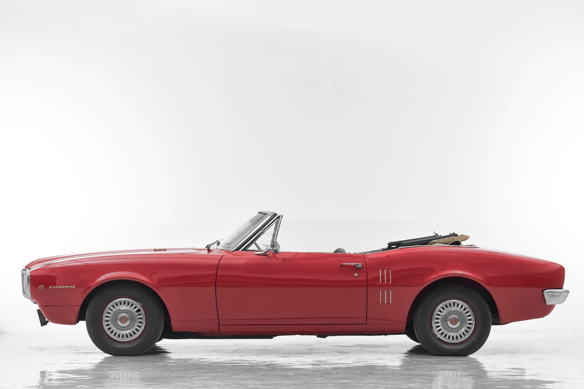 Sharing the Camaro’s F-body platform, the Firebird featured similar “coke-bottle” styling and shared significant body panels, including identical doors and front fenders